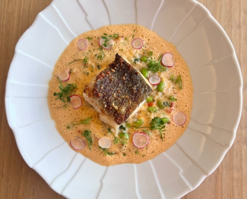 Dos de cabillaud rôti, risotto onctueux citron-olives.
